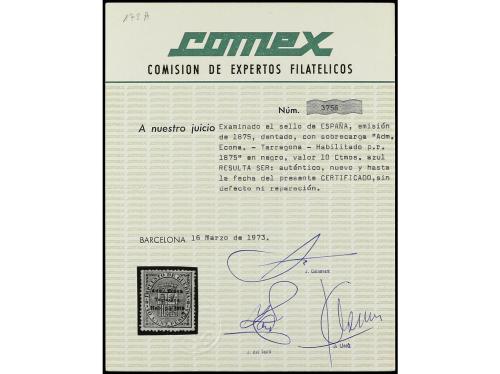 */(*) ESPAÑA. Ed. 172A/B. 5 cts. negro y 10 cts. azul. Habilitación Provisional de Tarragona. Muy bonitos. Raros en nuevo. Sello de 10 cts. cert. COMEX.
