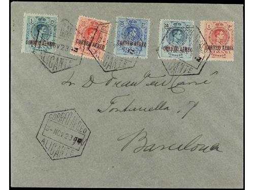 ESPAÑA. Ed. 292/96. 1923. ALICANTE a BARCELONA. Serie completa en carta, circulada por Correo aéreo, al dorso llegada.