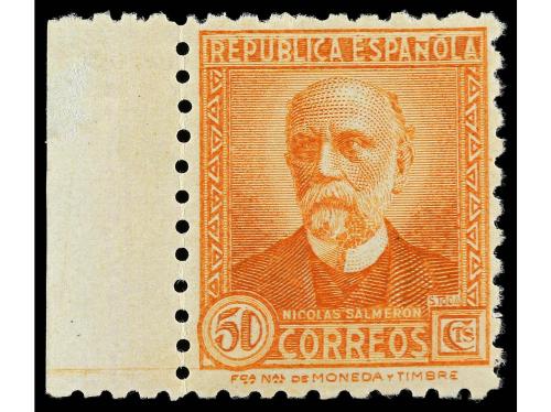 ** ESPAÑA. Ed. NE 34. NO EXPENDIDO. 50 cts. naranja rojizo. Excelente centraje. RARÍSIMO ASÍ. LUJO.