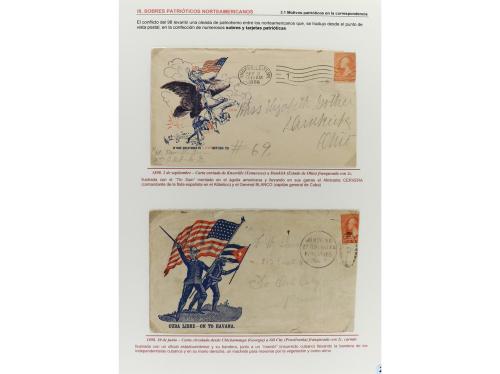 CUBA. 1898-99. GUERRA ESPAÑA-ESTADOS UNIDOS. Colección de 32 sobres patrióticos ilustrados circulados en Estados Unidos y en Cuba, al final se incluyen sobres modernos alusivos a la guerra España-USA (no contados). MUY INTERESANTE, importante examinar (ver en web).