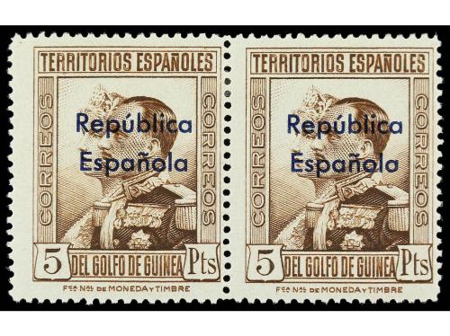* COLONIAS ESPAÑOLAS: GUINEA. Ed. 230/43. SERIE COMPLETA en parejas, un sello variedad "Españolo" (uno por hoja). Muy bonita.