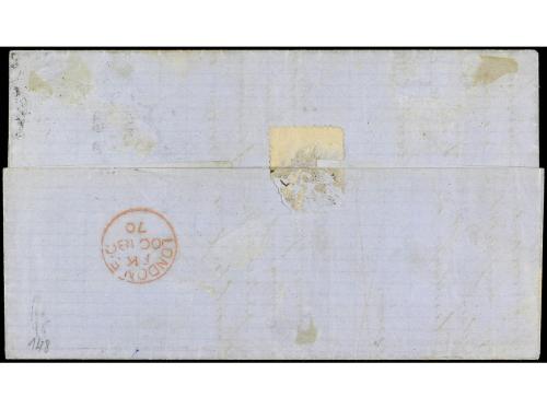 FRANCIA. Yv. 30. 1870. Envuelta circulada a LONDRES con sello de 30 cts. castaño, mat. ovalado inglés 723 y fechador SOUTHAMPTON / FRANCE / MB.