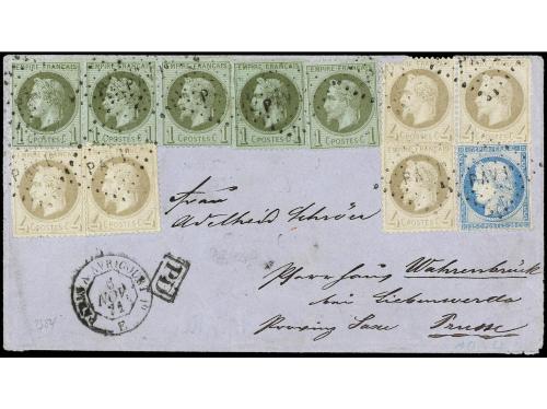 ✉ FRANCIA. Yv. 25 (5), 27 (5), 60. 1871. PARIS a PRUSIA (Ale ✉ FRANCIA. Yv. 25 (5), 27 (5), 60. 1871. PARIS a PRUSIA (Ale
