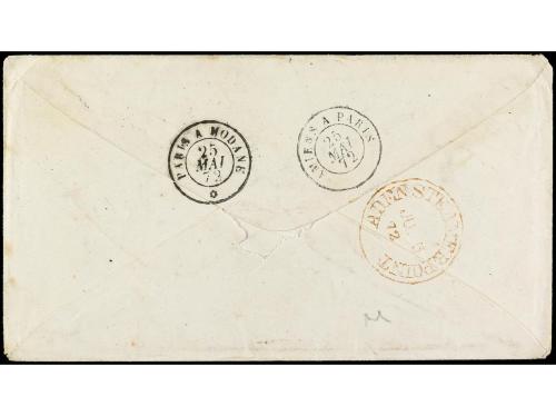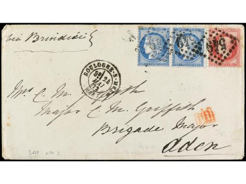 ✉ FRANCIA. Yv. 32, 37 (2). 1872. BOULOGNE a ADEN. 25 cts. az ✉ FRANCIA. Yv. 32, 37 (2). 1872. BOULOGNE a ADEN. 25 cts. az