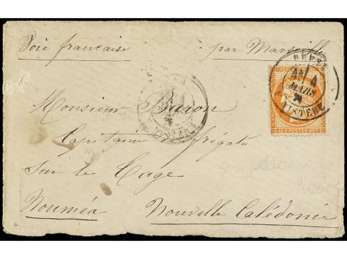 FRANCIA. Yv. 38. 1874. PARIS a NOUMEA (Nueva Caledonia). 40 cts. naranja, mat. fechador BREST.