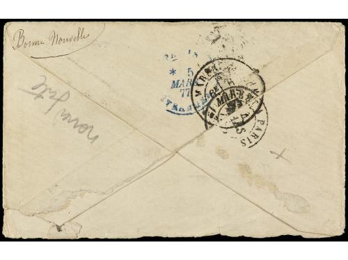 ✉ FRANCIA. Yv. 38. 1874. PARIS a NOUMEA (Nueva Caledonia). 4 ✉ FRANCIA. Yv. 38. 1874. PARIS a NOUMEA (Nueva Caledonia). 4