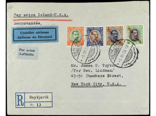 ISLANDIA. Yv. 12/14. 1933. REYKJAVIK a NEW YORK. Serie completa en carta circulada, al dorso llegada.