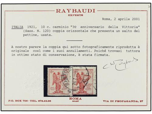 ° ITALIA. Sa. 120. 10 cts. rojo. Pareja SALTO DE PEINE. Cert. RAYBAUDI.