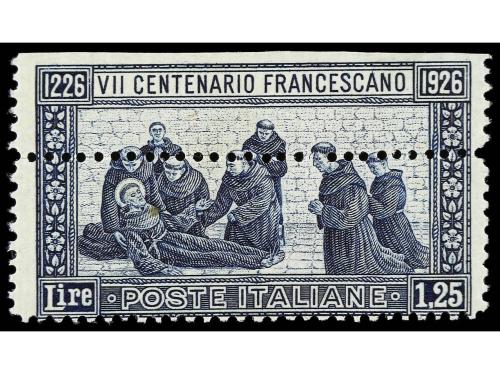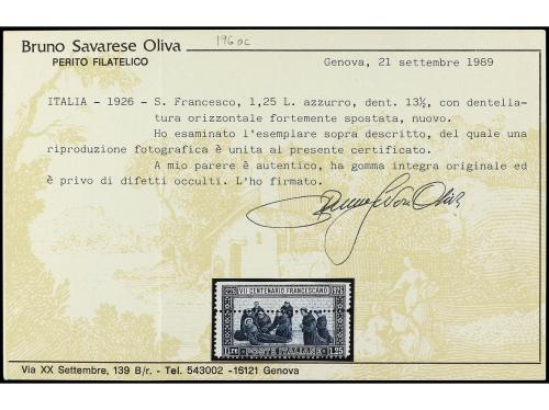 ** ITALIA. Sa. 196p. 1,25 l. azul. Variedad DENTADO HORIZONTAL DESPLAZADO. Cert. B. SAVARESE. Cat. 2.400€.
