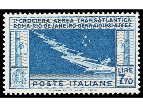 * ITALIA. Yv. Av. 25. 1930. CRUCERO BALBO. 7,70 l. azul-verde y sepia. Cat. 400€.