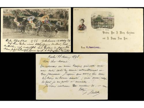 ✉ JAPON. 1896-98. Tres Enteros Postales de Japón circuladas ✉ JAPON. 1896-98. Tres Enteros Postales de Japón circuladas