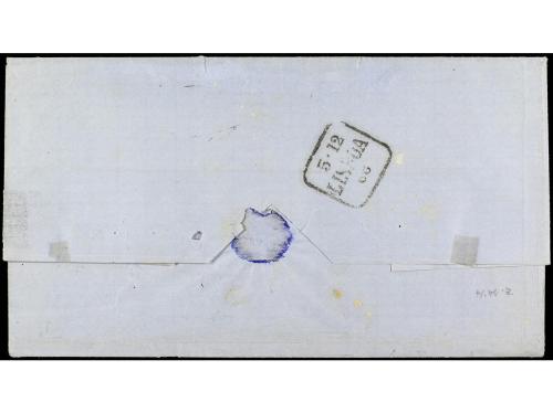 PORTUGAL: AZORES. Mu. 4, 19. 1868. HORTA a LISBOA. 25 reis rosa, dent. y 50 reis sin dentar, mat. círculo de líneas con número 15 en el interior. Rara combinación de franqueo dentado y sin dentar.