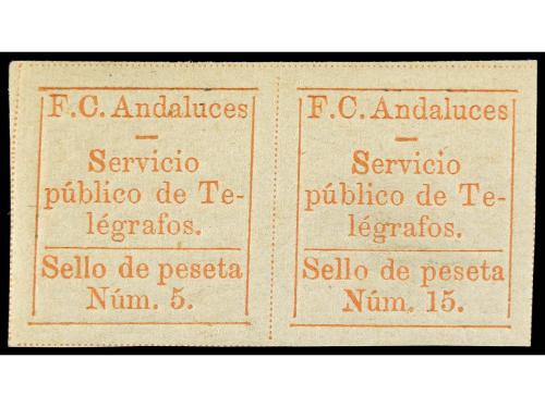 ** ESPAÑA: TELEGRAFOS PARTICULARES. Ed. 1/2 (2). FERROCARRILES ANDALUCES. Serie completa. 2 valores en parejas. RARA y de LUJO infravalorada en el catálogo.