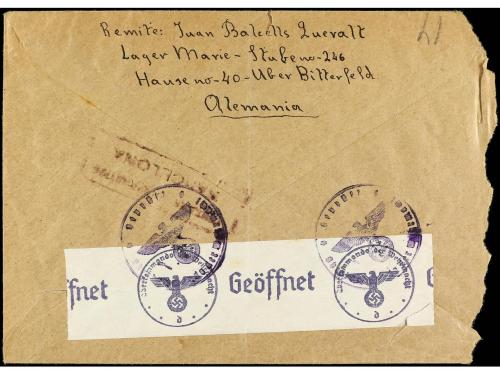 ESPAÑA. 1942. PRISIONEROS ESPAÑOLES EN CAMPOS DE CONCENTRACIÓN NAZIS. Sobre circulado en BITTERFELD a BARCELONA, remitido desde el campo de LAGER MARIE (para trabajar en las minas de lignito y plantas químicas y liberado en abril de 1945). RARA.