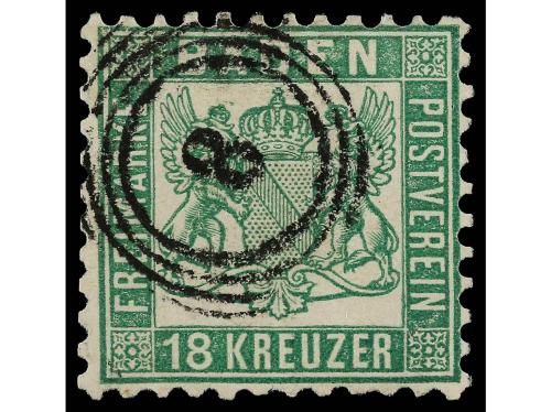 ° ALEMANIA ANTIGUOS ESTADOS: BADEN. Yv. 20. 1862-64. 18 kr. verde. MUY BONITO EJEMPLAR.