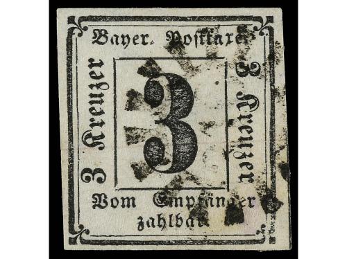 ° ALEMANIA ANTIGUOS ESTADOS: BAVIERA. Yv. T-1. 1862. 3 kr. negro. MUY BONITO. Firma Sem.