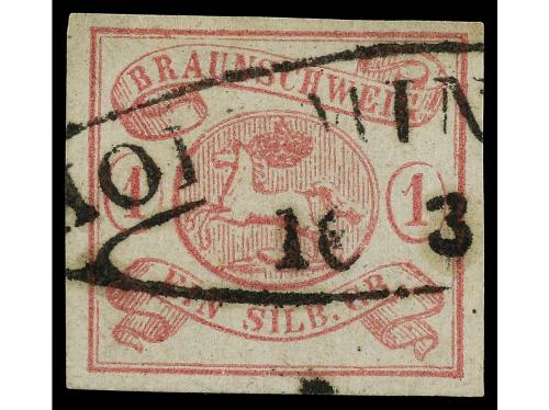° ALEMANIA ANTIGUOS ESTADOS: BRUNSWICK. Yv. 1. 1852. 1 sgr. rosa. BONITO EJEMPLAR.