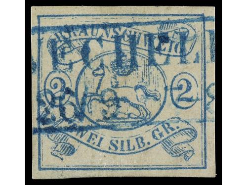 ° ALEMANIA ANTIGUOS ESTADOS: BRUNSWICK. Yv. 2. 1852. 2 sgr. azul. BONITO EJEMPLAR.