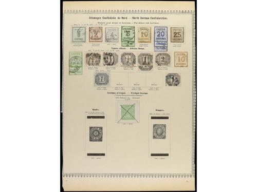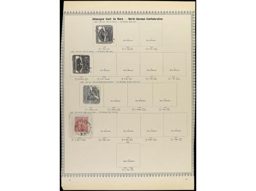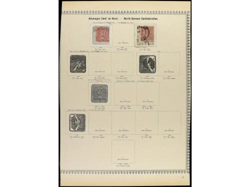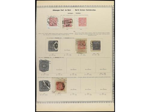 ° ALEMANIA ANTIGUOS ESTADOS: CONFEDERACION DEL NORTE. 1868-71. Cinco páginas de álbum con sellos en usado, incluye la serie de Alsacia-Lorena y enteros.