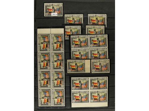 ESPAÑA. 1938. CONSTITUCIÓN. Colección especializada montada en hojas clasificador que comprende diversos sellos y variedades de Edifil 765. Sellos en nuevo, con o sin fijasellos. Destacan sellos dentados (incluyendo bloque de 8) y sin dentar, pruebas variedades color en sobrecarga, invertidos, bloques, etc. Valor Edifil de lo catalogado, aprox. 45.000Ђ. En algún sello, hay leves manchas del tiempo. A EXAMINAR. Foto en web.