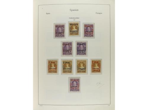 LOTES y COLECCIONES. ESPAÑA. Colección en 8 álbumes KABE de 1850 a 2019. Hasta 1925 mayoría en usado, calidad diversa. Resto muy completo, mayoría en nuevo con fijasellos, incluyendo series de valor como Quijote, UPU, Cruz Roja (con la rara de colonias), Ferrocarriles, Submarino (con SH), Milicias, Pilares, etc. Cat. Edifil 2025, + 25.000Ђ (alto facial en Ђ). Foto en web (ex-23).