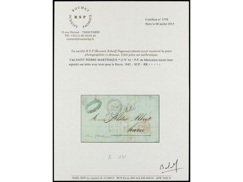 MARTINICA. 1842. ST. PIERRE a FRANCIA. Fechador SAINT PIERRE MARTINIQUE/* y P.P. de manufactura local. MUY RARA. Cert. ROUMET.