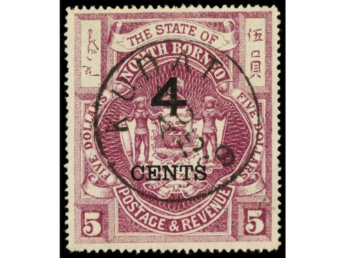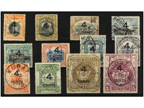 ° BORNEO. Ed. 86/97. Yv. 86/97. SERIE COMPLETA, 12 valores sobrecargados. Mat. filatélico (philatelic cancel). Cat. 450€.