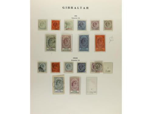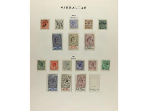 LOTES y COLECCIONES. GIBRALTAR. Colección montada en álbum, período 1886-1980. Parte antigua bien representada con sellos en nuevo y usado, alguno defecto. Muy buen lote. Valor Yvert aprox 7.000Ђ. Foto en web-ex 7.