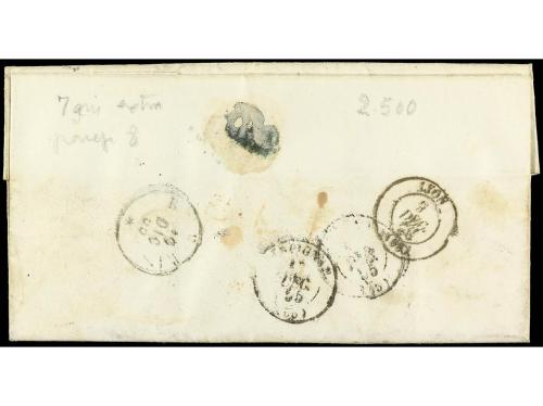 ITALIA ANTIGUOS ESTADOS: ESTADOS PONTIFICIOS. 1855. LORETO a PALMA DE MALLORCA. 6 baj. y 8 baj (2). Marca lineal LORETO y tasada a la llegada con 4 reales.