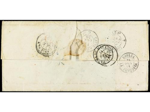 ITALIA ANTIGUOS ESTADOS: ESTADOS PONTIFICIOS. 1858. LORETO a PALMA DE MALLORCA. 7 baj. (2) y 8 baj. Marca lineal LORETO y tasada a la llegada con 4 reales.