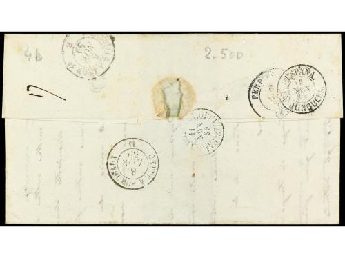 ITALIA ANTIGUOS ESTADOS: ESTADOS PONTIFICIOS. 1859. LORETO a PALMA DE MALLORCA. 3 baj. (3), 6 baj. y 7 baj. Marca lineal LORETO y tasada a la llegada con 4 reales.