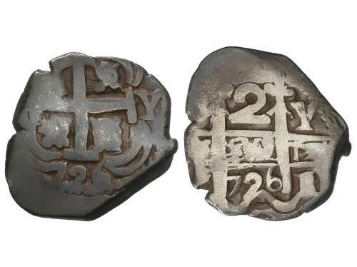 LUIS I. 2 Reales. 1726. POTOSÍ. Y. 5,52 grs. Pátina oscura.