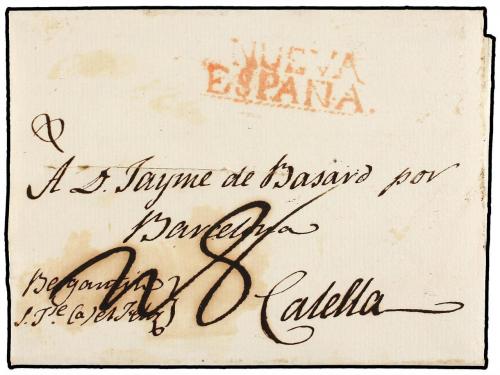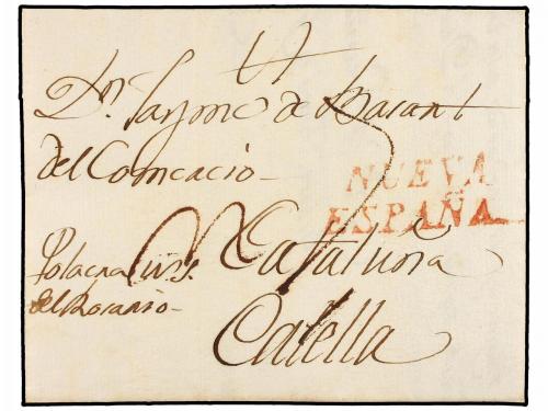 ✉ MEXICO. 1804 (9 Marzo). VERACRUZ a CALELLA (Barcelona). Marca NUEVA/ESPAÑA en rojo y manuscrito "Polacra N.S. del Rosario" , porte de "7 Reales".