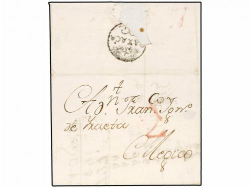 ✉ MEXICO. 1824. CAMPECHE a CADAQUÉS (Gerona). Marca YNDIAS en rojo de Cádiz y cortes en las esquinas del LAZARETO DE MAHON. MUY RARA y más en carta procedente de México.