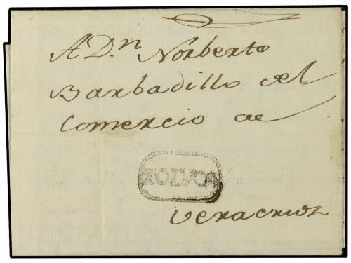 ✉ MEXICO. 1811 (27-Febrero). XALAPA a VERACRUZ. Marca FRANCO / EN XALAPA (nº 4 ) en negro. MAGNIFICA Y RARA.