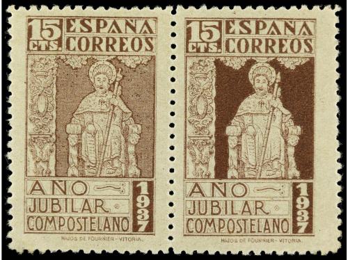 * ESPAÑA. Ed. 833 (2). 15 cts. castaño en pareja horizontal. El sello de la derecha CASTAÑO NEGRO. RARA.