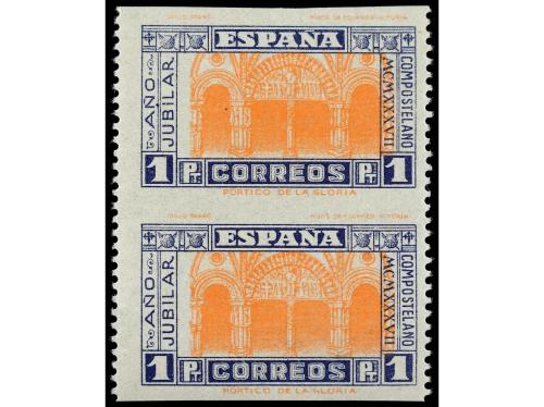 ** ESPAÑA. Ed. 835sh (2). 1 pta. azul y naranja. Pareja vertical SIN DENTADO HORIZONTAL. Cat. +232€.