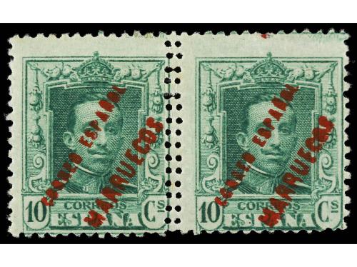 * COLONIAS ESPAÑOLAS: TANGER. Ed. 3hdx. 10 cts. rojo. Variedad HABILITACIÓN DESPLAZADA en diagonal. MUY RARO. Margen inferior izquierdo reparado. Cat. 650€.
