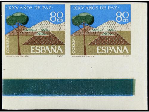 ** ESPAÑA. Ed. 1581s. XXV AÑOS DE PAZ. 80 cts. multicolor. Pareja SIN DENTAR, esquina de pliego. LUJO. Cert. CEM. Cat. 2.600€.