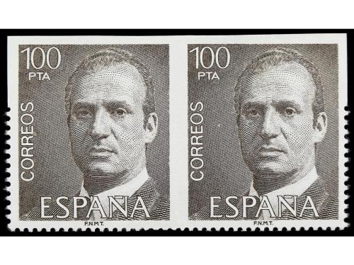 ** ESPAÑA. Ed. 2605. JUAN CARLOS I. 100 pts. castaño. Pareja DENTADO PARCIAL.