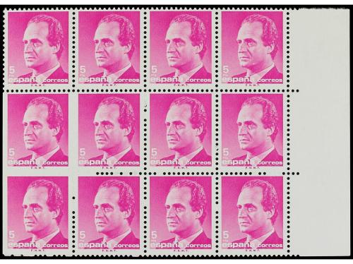 ** ESPAÑA. Ed. 2795. JUAN CARLOS I. 5 pts. púrpura. Bloque de 12 SIN DENTAR PARCIALMENTE. RARO.