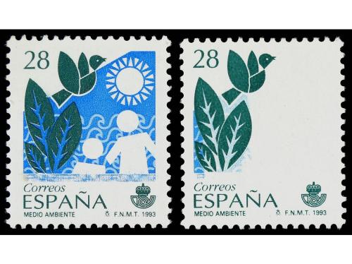 ** ESPAÑA. Ed. 3238. MEDIO AMBIENTE. 28 pts. azul y verde. FALTA GRAN PARTE DEL COLOR AZUL.