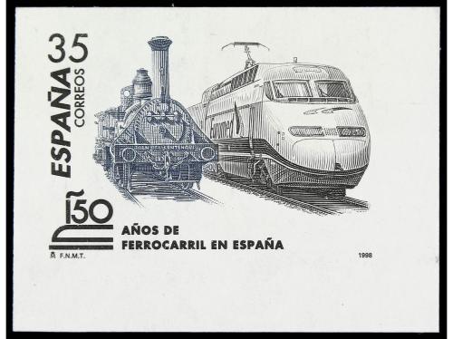 ** ESPAÑA. Ed. 3591s. 150 AÑOS DEL FERROCARRIL EN ESPAÑA. 35 pts. ultramar y negro SIN DENTAR. RARÍSIMO. Cert. COMEX.