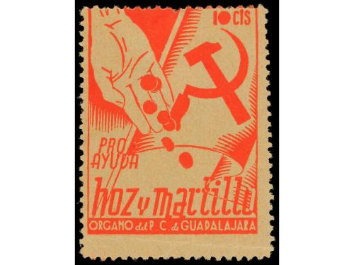* ESPAÑA GUERRA CIVIL. GUADALAJARA. 10 cts. rojo. Pro Ayuda Hoz y Martillo. (Al. 2).