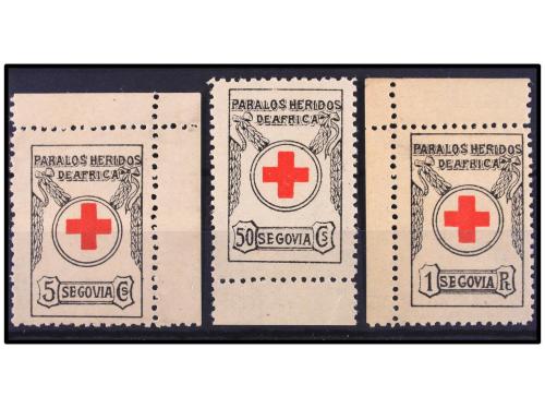 * ESPAÑA: VIÑETAS. SEGOVIA GUERRA DE ÁFRICA. 5 cts., 50 cts. y 1 pta. Para los Heridos de África. (1920 CA.). RARAS.