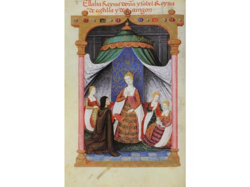 2010. LIBRO. (FACSÍMIL). BREVIARIO DE ISABEL LA CATÓLICA. Barcelona: Ed. Moleiro, 2010. 4º. Aprox. 300 hojas imitación pergamino con la reproducción facsimilar del original que se encuentra custodiado en la British Library de Londres. Abundantes ilustraciones y capitales iluminadas con dorados. Enc. en plena piel con decoración geométrica gofrada, nervios. Guardas con aplicaciones en piel, también decoradas. Se presenta en un estuche en plena piel con decoración geométrica gofrada, con alguna leve rozadura. Con el acta notarial, edición de 987 ejemplares numerados. Con el libro de estudio.