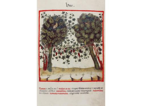 1998. LIBRO. (FACSÍMIL). TEATHRUM SANITATIS. Trad. de Anne Barton de Mayor. Barcelona: Moleiro, 1998. Folio menor. Abund. ilustr. Cada página con una ilustración en color. Enc. en piel con dorados y con estuche de piel (alguna marquita) y el interior de seda. Edición de 987 ejemplares numerados. Certificado notarial de autenticidad. El Theatrum Sanitatis contiene un tratado médico muy difundido durante los siglos XIV y XV, destinado a divulgar entre los príncipes y los poderosos las normas higiénicas de la medicina racional (es decir, fruto de la experimentación, y no de las creencias mágico-religiosas) de la baja Edad Media. Este códice es un resumen de la traducción latina de finales del s. XI. Su contenido son los seis elementos necesarios para el mantenimiento cotidiano de la salud y cómo la afectan si se alteran. Las ilustraciones se enmarcan dentro de la tradición artística lombarda, en la escuela de Giovanni de Grassi. Con el libro de estudio, la sobrecubierta algo sucia.