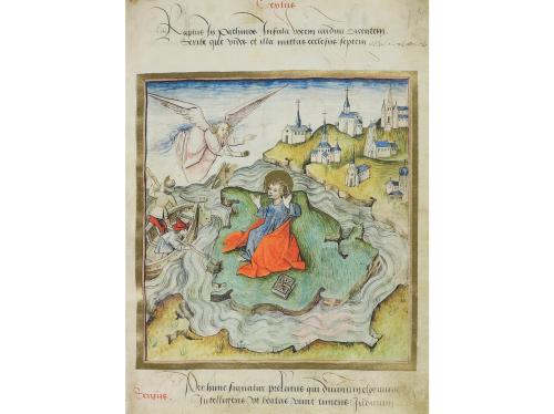 2004. LIBRO. (FACSÍMIL). DIE TRINITY-APOKALYPSE. Cambrigde, Trinity College Library, MS R.16.2. Luzern: verlag Luzern, 2004. 3 vol. Vol. de facsímil en folio mayor: 32 fol. ilustr. con abundantes dorados, del original que se conserva en la biblioteca del Trinity College de Cambridge. Presentado en estuche de metacrilato. Vol. de estudio en 4º, sin abrir, con el precinto original. Edición numerada de 980 ejemplares.