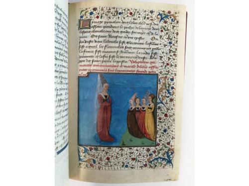 2020. LIBRO. (FACSÍMIL). LIBRO DE HORAS DEL DELFÍN DE FRANCIA. Bilbao: Ediciones de Arte y Bibliofilia, 2020. 8º mayor. Rerpoducción del original que se custodia en la Bibliothèque de Grenoble , bajo la signatura Ms. 1011. Reproduce fielmente el calendario, las miniaturas y texto del original. Enc. en terciopelo, con escudo metálico sobrepuesto en el plano anterior, presentado en un elegante estuche lacado. Con acta notarial que indica que la tirada total es de 400 ejemplares. Sin el libro de estudio.