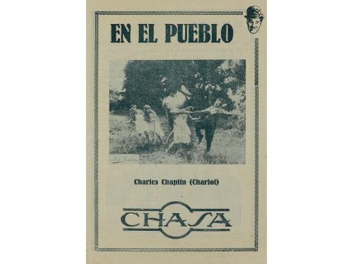 1919. PROGRAMA DE MANO. EN EL PUEBLO (SUNNYSIDE). Díptico offset. Pequeñas arruguitas. Doblez vertical ligeramente desplazado. Alguna rajita marginal.